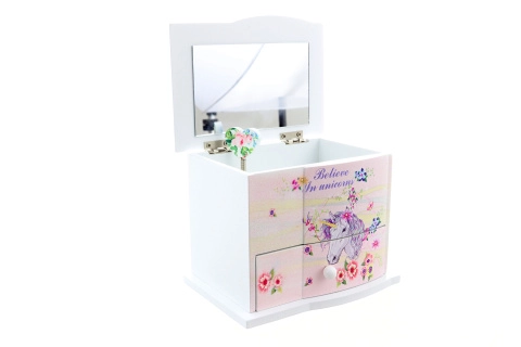 Magiczny świat małych skarbów zasługuje na własny dom – dziecięcą szkatułkę na biżuterię, która zmienia ozdabianie w rytuał radości. Szkatułki dla dziewczynek wyróżniają się pięknym designem, bezpiecznymi materiałami i detalami, takimi jak dziecięca szkatułka z lusterkiem, muzyczna szkatułka z baletnicą czy różowa szkatułka z motywami jednorożców i księżniczek. Niezależnie od tego, czy wybierzesz drewnianą szkatułkę, dziecięce pudełko na biżuterię czy uroczą szkatułkę na drobiazgi, mali właściciele zawsze będą mieć swoje skarby pod ręką.