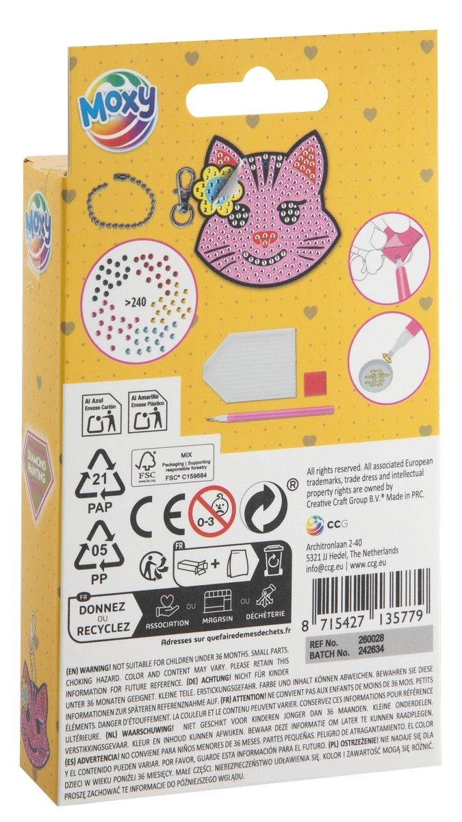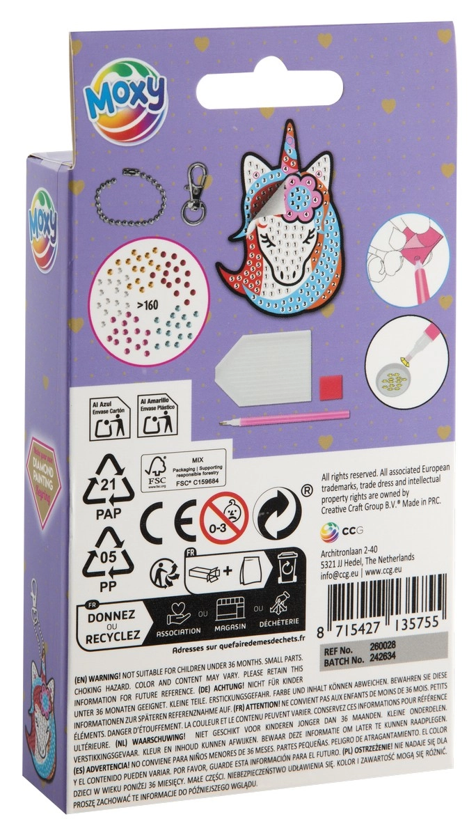 Każdy zestaw malowania diamentowego zawiera wstępnie zadrukowane płótno z warstwą klejącą i legendą DMC, akrylowe kryształki (okrągłe/kwadratowe), aplikator/długopis z woskiem, tackę oraz woreczki do sortowania; często także pęsetę. Dzięki wysokiej jakości nadrukowi, silnej przyczepności i precyzyjnemu oznaczeniu kryształki łatwo się układają, a gotowa diamentowa mozaika lśni jak kryształ 5D. Tworzenie jest łatwe na start, ale prowadzi do detalicznego obrazu i rozwija koncentrację oraz małą motorykę.