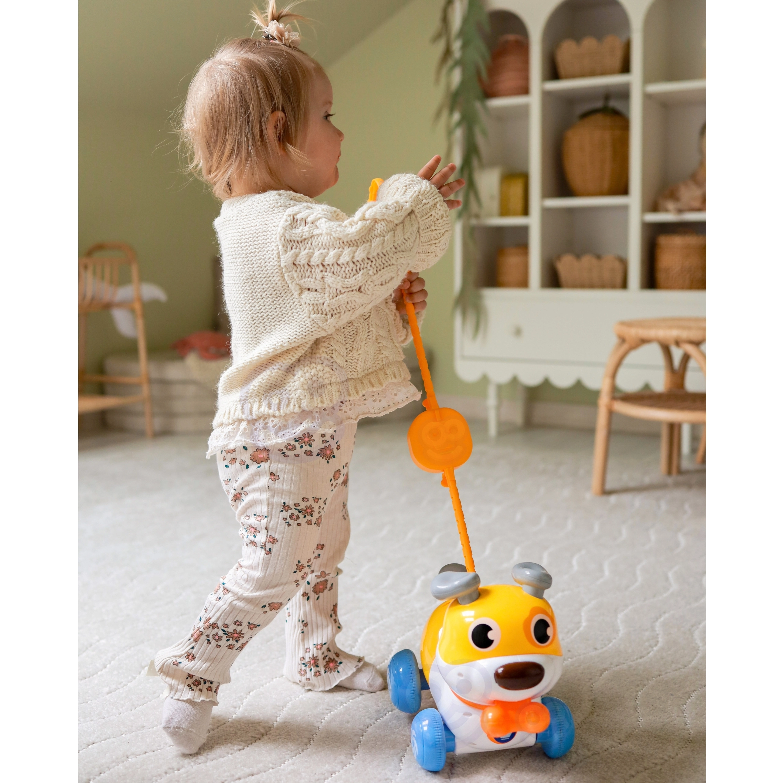 Rozkręć pierwsze kroki z uśmiechem – jeździki i zabawki do ciągnięcia zamieniają każdy krok w radosne odkrywanie. Te zabawki dla najmłodszych motywują maluchy do naturalnego ruchu, wspierają rozwój motoryki dużej i małej, trenują koordynację, równowagę i orientację w przestrzeni. Jeździki dla dzieci, zabawki do ciągnięcia oraz urocze zwierzątka na sznurku dodają radości z ruchu i wzmacniają chęć samodzielnego chodzenia.