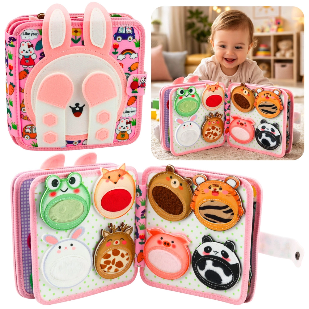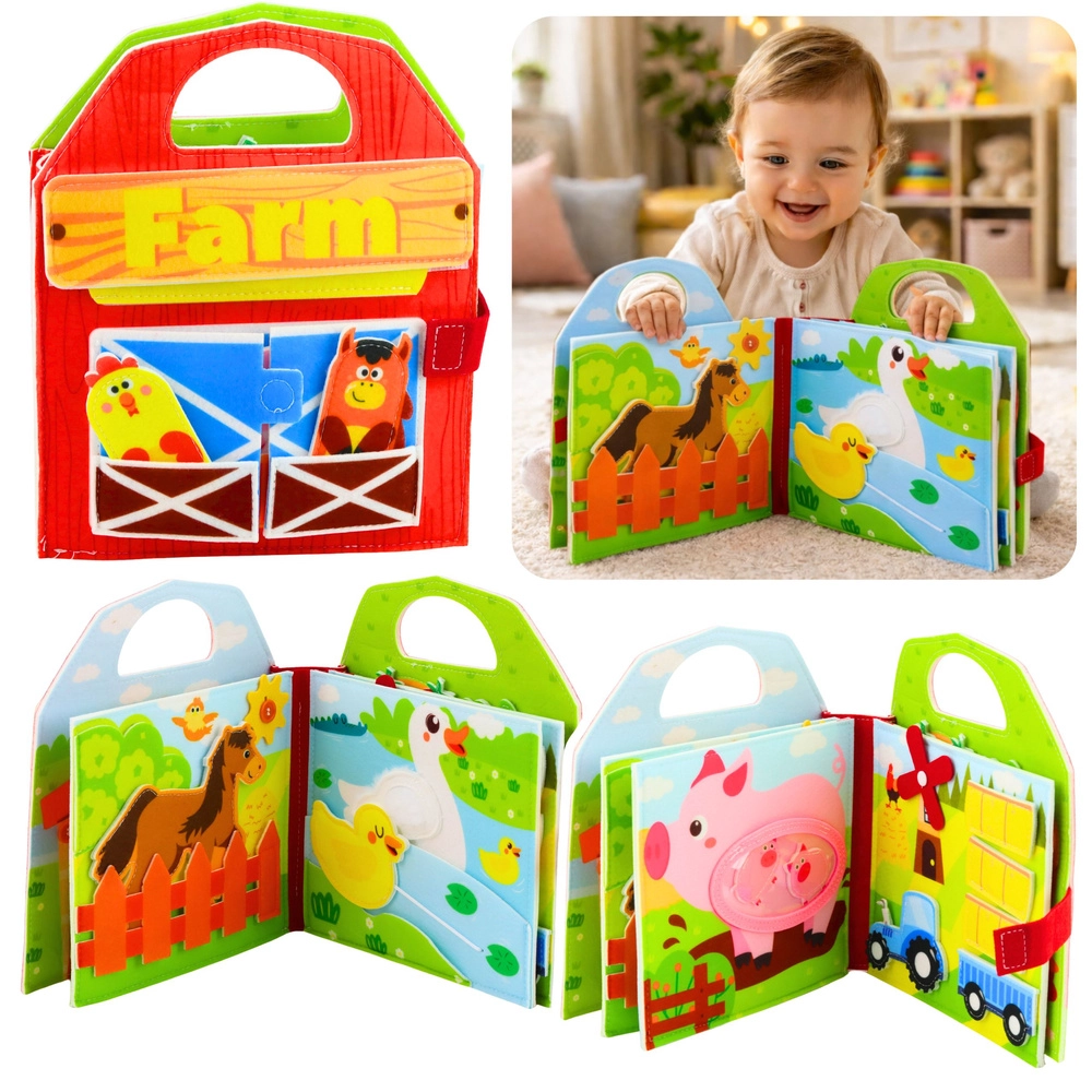Książeczki materiałowe są lekkie, trwałe i nadają się do prania w pralce, dlatego świetnie sprawdzą się w wózku, łóżeczku i w podróży. Praktyczna pętelka, rzep lub plastikowy kółeczek umożliwiają przypięcie, a mocne szwy i wysokiej jakości tkaniny wytrzymają częste ugniatanie i gryzienie. Materiały są delikatne dla skóry dziecka, a zabawki spełniają normy bezpieczeństwa dla najmłodszych (0m+, 3m+).