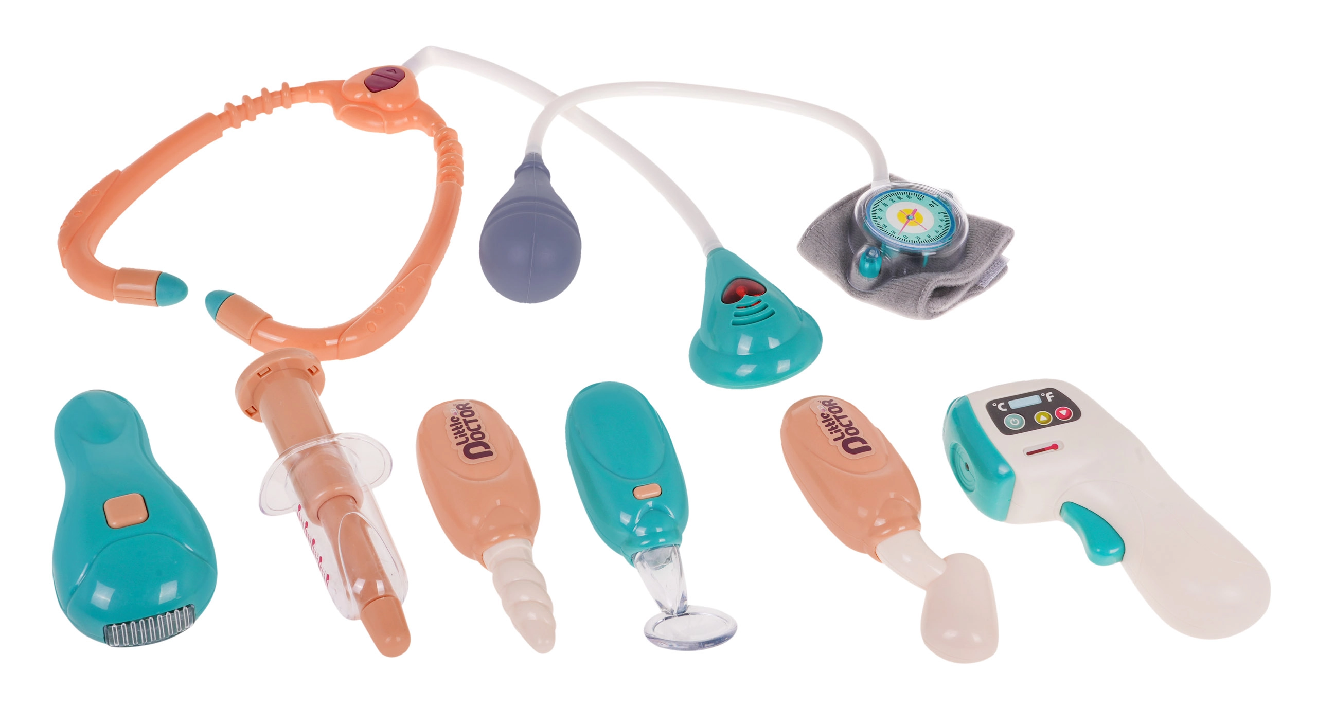Zestawy lekarskie inspirują do opieki od badania, przez szczepienie, aż po domową „dziecięcą klinikę”. Dzieci słuchają serca, mierzą temperaturę, zapisują diagnozę i troszczą się o „pacjenta” w małym gabinecie lekarskim. Trwałe i łatwe do czyszczenia materiały, przemyślane detale oraz praktyczne kuferki gwarantują bezpieczną, długotrwałą i wartościową zabawę – idealną do zabawy w doktora, dziecięce narzędzia medyczne i rozwój umiejętności społecznych.