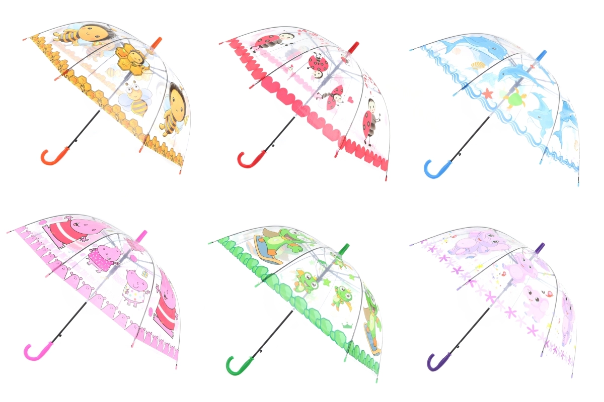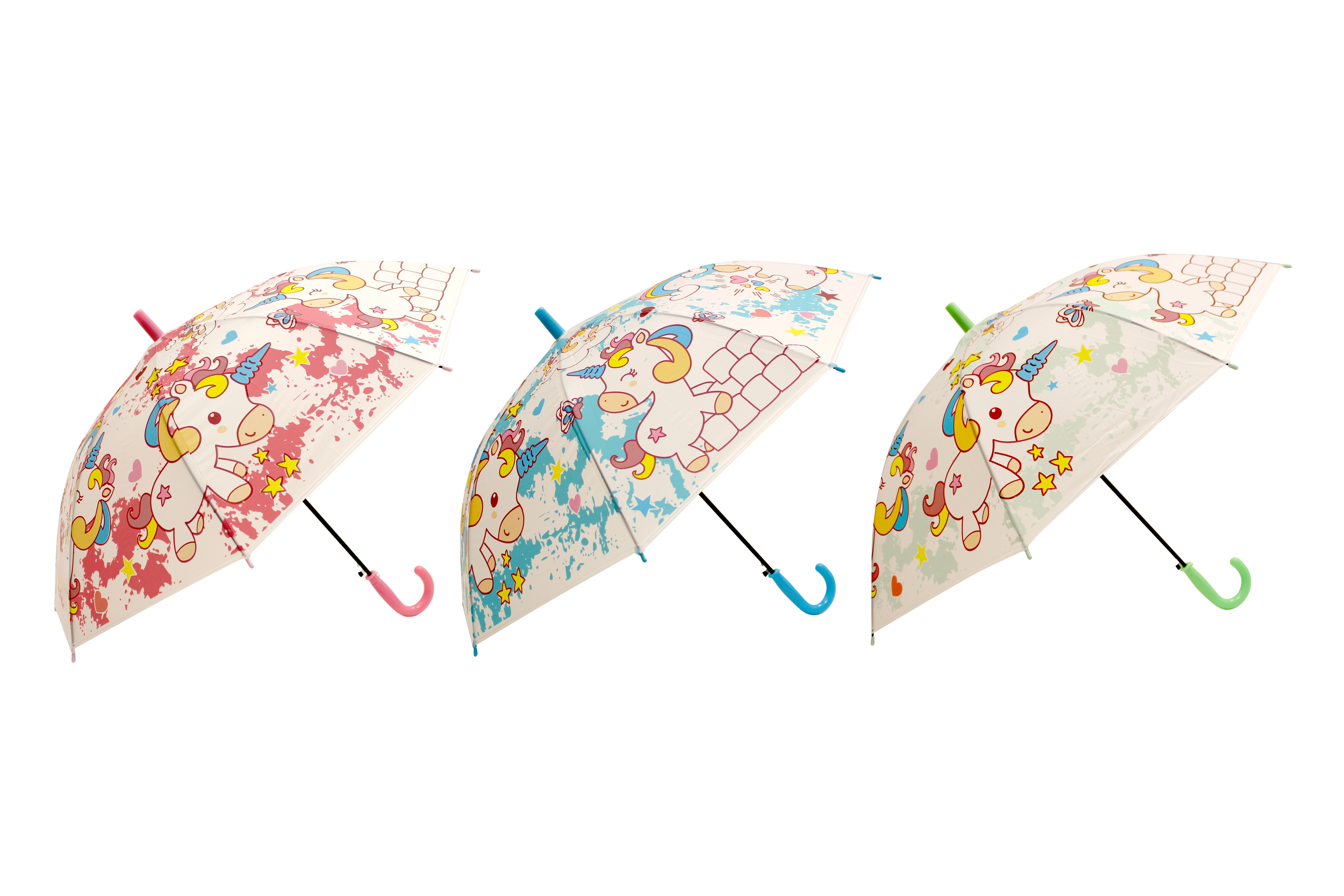 Wybierz parasol dziecięcy typu laska z ergonomiczną rączką w kształcie haczyka, przezroczysty parasol dla dzieci z głęboką kopułą dla doskonałej widoczności albo składany parasol dziecięcy do plecaka. Wszystkie typy oferują lekkie i wygodne noszenie, łatwą i bezpieczną obsługę oraz barwne motywy – od aut przez dinozaury po jednorożce, w tym licencjonowane nadruki ulubionych bajkowych postaci – aby swój parasol znaleźli zarówno chłopcy, jak i dziewczynki.