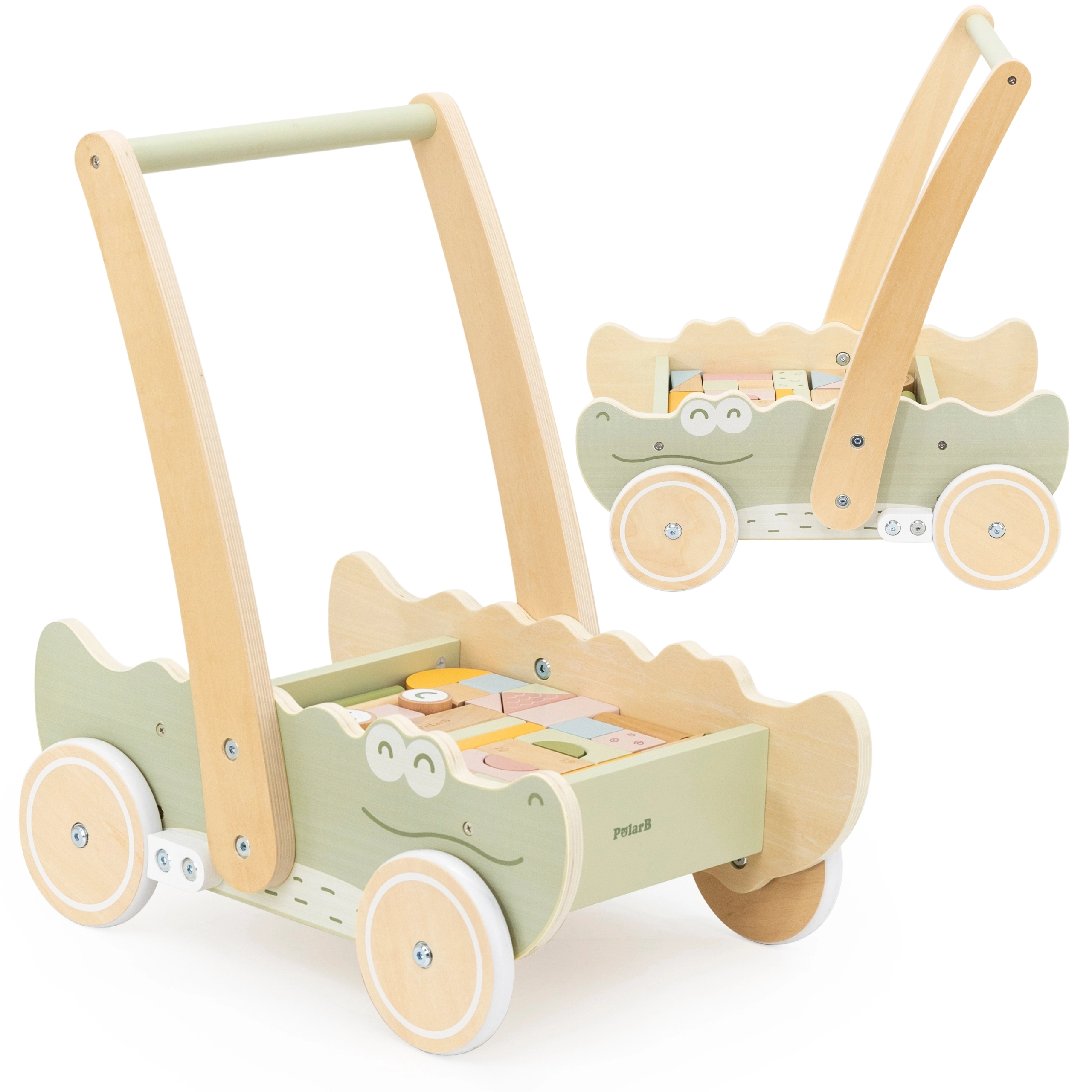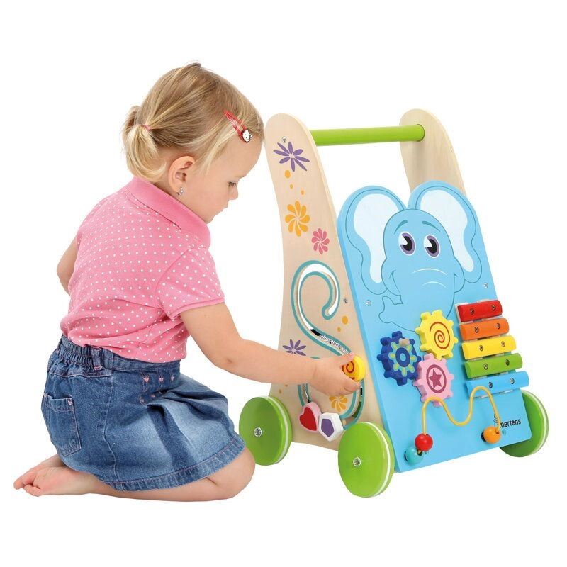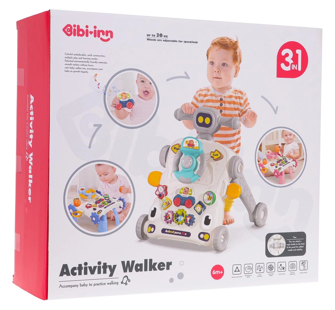 Modele ze stabilną konstrukcją i szeroką podstawą, z elementami antypoślizgowymi i cichymi gumowymi kółkami, opcjonalnie z hamulcem lub blokadą kół, dają dziecku pewność podczas nauki. Ergonomiczny i regulowany na wysokość uchwyt rośnie razem z dzieckiem, zdejmowane panele ułatwiają pielęgnację, a niektóre warianty są składane i lekkie dla łatwego przenoszenia. Wysokiej jakości materiały bez BPA, zaokrąglone krawędzie oraz certyfikacja EN 71 zapewniają maksymalne bezpieczeństwo podczas pierwszych kroków.