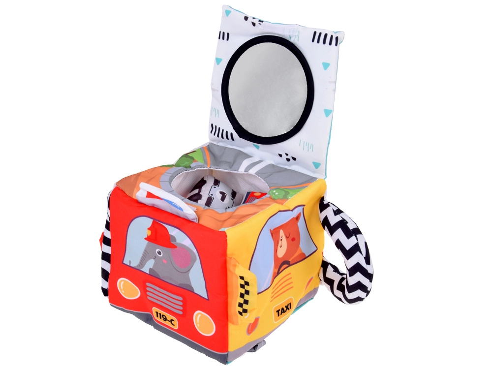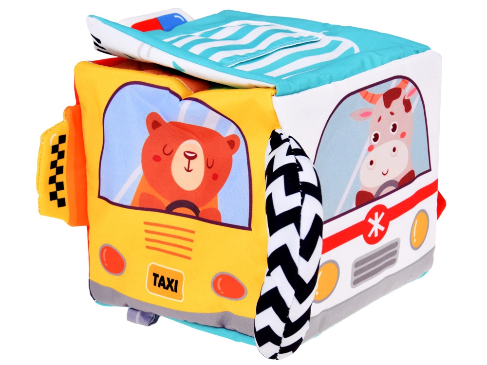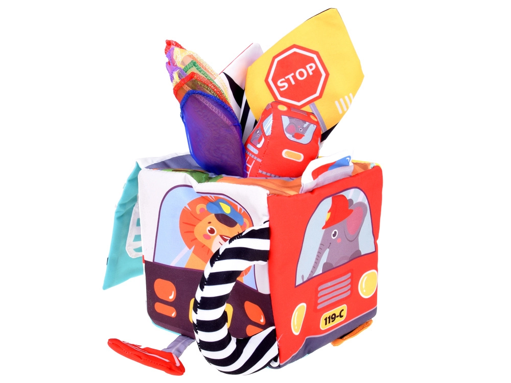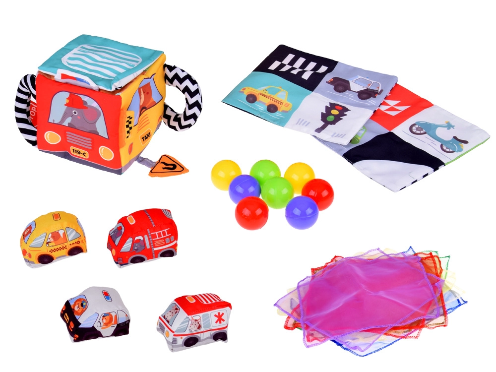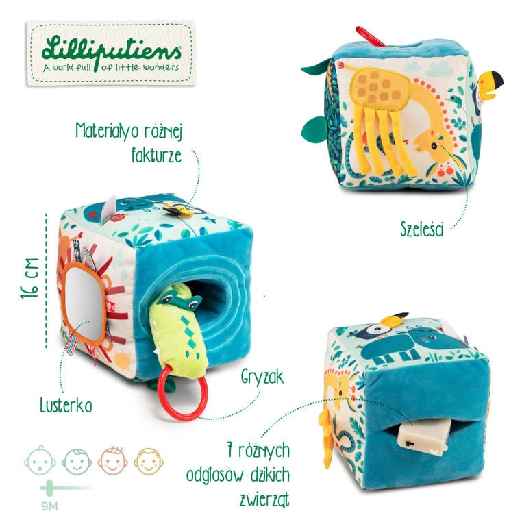 Do ulubionych typów należą materiałowe przytulanki i maskotki do ukojenia, książeczki tekstylne i leporella do pierwszego „czytania”, grzechotki i szeleszczące zabawki z piszczałką, kostki aktywizujące oraz zawieszane zabawki do wózka czy łóżeczka. Różne faktury, czarno-białe kontrastowe wzory oraz bezpiecznie wszyte metki i supełki zachęcają do dotykania i wspierają rozwój zmysłów, motorykę małą oraz koordynację oko–ręka w duchu inspiracji Montessori.