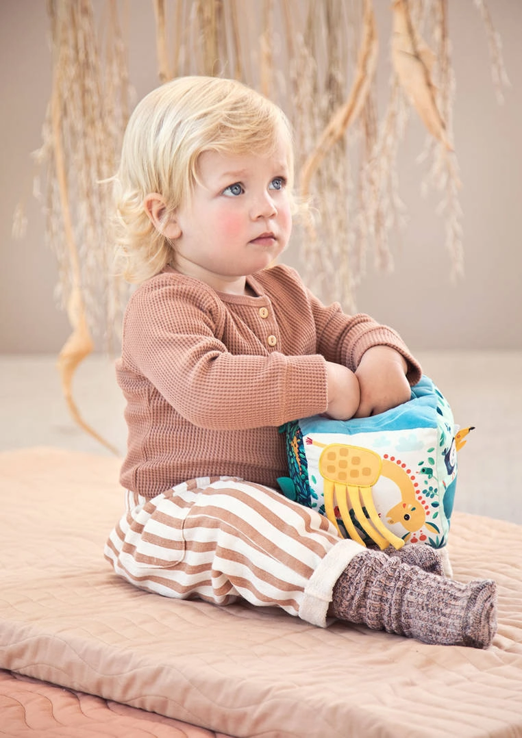 Zabawki tekstylne są lekkie, kompaktowe i często łatwe do prania, dzięki czemu można je zawsze utrzymać w czystości i gotowości do zabawy. Solidne szycie, mocne szwy i miękkie wypełnienie zapewniają wysoką jakość wykonania i długą żywotność, a stonowane kolory i miękkie materiały przynoszą komfort podczas zabawy i zasypiania. Zabawki materiałowe dla najmłodszych świetnie sprawdzą się w wózku, łóżeczku i w podróży, a także stanowią popularny prezent z okazji narodzin dziecka.