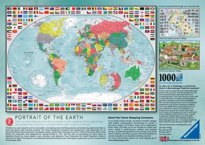 Te wysokiej jakości puzzle z motywem kolorowej mapy świata to nie tylko zabawa, ale i nauka. Dzięki precyzyjnemu nadrukowi i solidnemu kartonowi od RAVENSBURGER możesz liczyć na długą trwałość i idealne dopasowanie elementów. Idealne na spokojne wieczory, rodzinne chwile oraz jako dekoracja po sklejeniu.