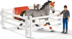 Odkryj świat koni z zestawem do zabawy, który zapewnia dzieciom realistyczny trening woltyżerki. W opakowaniu znajdziesz figurki Mii i trenera Toma, konia turniejowego z odpinanym siodłem i uzdą, zagrodę do bezpiecznego treningu, trofeum dla zwycięzcy oraz uroczego kociaka z koszykiem. Figurki mają ruchome kończyny, co ułatwia jeszcze lepszą zabawę i rozwijanie wyobraźni.