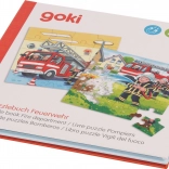 Magnetyczna książka z puzzlami Straż Pożarna zapewnia dzieciom angażujące doświadczenie z czterema pięknymi obrazkami. Dwa z nich dzieci mogą ułożyć jako puzzle z 20 magnetycznych elementów: