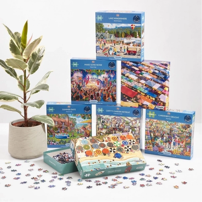 Odkryj radość układania z puzzlami GIBSONS Letnie dni. Dzięki wysokiej jakości tekturze i precyzyjnemu wykrojowi elementy idealnie do siebie pasują, a motyw o letniej atmosferze ucieszy każdego miłośnika puzzli. Idealne na spokojne wieczory i wspólne chwile z rodziną.