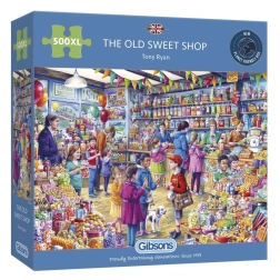 Tradycyjna brytyjska marka GIBSONS oferuje pięknie ilustrowane puzzle z uroczym motywem starej cukierni. Dzięki 500 elementom XL układanie jest wygodniejsze – pojedyncze elementy są większe, dobrze leżą w dłoni i doskonale do siebie pasują.