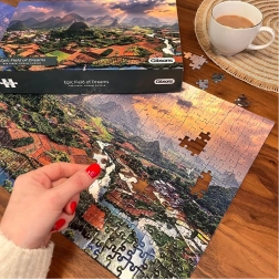 Gotowe puzzle o wymiarach 68,5 × 32 cm świetnie nadają się do oprawienia w ramę. W zestawie znajduje się również wzór motywu, który ułatwi układanie i ucieszy także mniej doświadczonych miłośników puzzli. Doskonały pomysł na prezent dla fanów krajobrazów i wysokiej jakości fotografii.