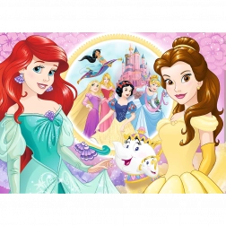 Idealny prezent dla dzieci, które kochają DISNEY PRINCESS. Efekt brokatu zachwyca od pierwszego spojrzenia i zamienia układanie w jeszcze ciekawszą zabawę.