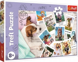 Puzzle Zdjęcia z wakacji z 300 elementami oferują zabawne wyzwanie dla każdego miłośnika układanek. Przedstawiają zabawne zdjęcia piesków z podróży i są idealne na chwile relaksu.