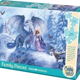 Rodzinne puzzle COBBLE HILL Lodowy smok zaprojektowano tak, aby bawiły i małych, i dużych. W jednej części obrazu znajdziesz duże elementy idealne dla młodszych dzieci, pośrodku średnie elementy dla wygodnego układania, a po drugiej stronie małe elementy dla bardziej doświadczonych układających. Każdy znajdzie swoją część motywu, a układanie przebiega spokojnie i wspólnie.