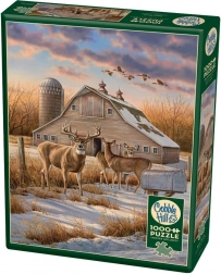 Odkryj urok zimowego krajobrazu z jeleniami, stodołą i lecącymi gęsiami – dopracowana ilustracja tworzy efektowny motyw, który pokochają miłośnicy przyrody i wsi. Puzzle COBBLE HILL słyną z precyzyjnej jakości i unikalnego wykrojnika, zapewniającego jedyne w swoim rodzaju wrażenia z układania.