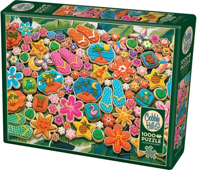 Puzzle COBBLE HILL Tropikalne ciasteczka 1000 elementów zachwycą wszystkich miłośników układanek, którzy szukają wyzwania i pięknego motywu. Specjalna wykrojnikowa technologia z nieregularnymi elementami różni się od standardowej siatki, dzięki czemu układanie jest bardziej angażujące i wymagające. Wysokiej jakości nadruk i nasycone barwy motywu tropikalnych ciasteczek doskonale prezentują się w każdym wnętrzu.