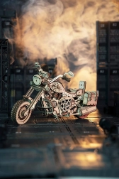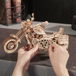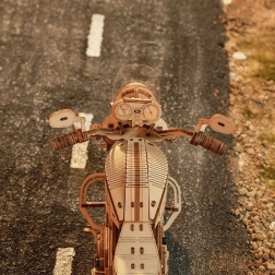 Ta drewniana mechaniczna motorowerowa układanka to świetny wybór dla wszystkich, którzy kochają design, technikę i rzemieślniczą pracę. Nakręcany sprężynowy mechanizm ze spustem wprawia model w żwawy ruch, a funkcjonalna kierownica umożliwia częściowe prowadzenie kierunku. Realistyczną pracę silnika doskonale uzupełnia ruch tłoków oraz działające zawieszenie przedniego widelca.
