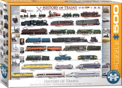 Te puzzle z motywem Historii pociągów prezentują przegląd kultowych lokomotyw i składów z różnych okresów. Dzięki większym elementom XL wygodnie układają je nawet początkujący lub rodziny z dziećmi, a końcowy obraz o wymiarach ok. 67,63 × 48,89 cm świetnie zaprezentuje się na każdej ścianie.