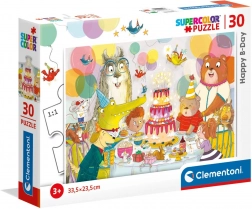 Dziecięce puzzle z serii SuperColor marki CLEMENTONI z motywem urodzin ucieszą małych konstruktorów od 3 lat. Wysokiej jakości materiały oraz wyraźne, żywe kolory gwarantują długą trwałość i radość z układania. Dzięki większym i solidnym elementom puzzle rozwijają zręczność manualną, spostrzegawczość i cierpliwość. Gotowy obrazek ma wymiary około 33,5 × 23,5 cm.