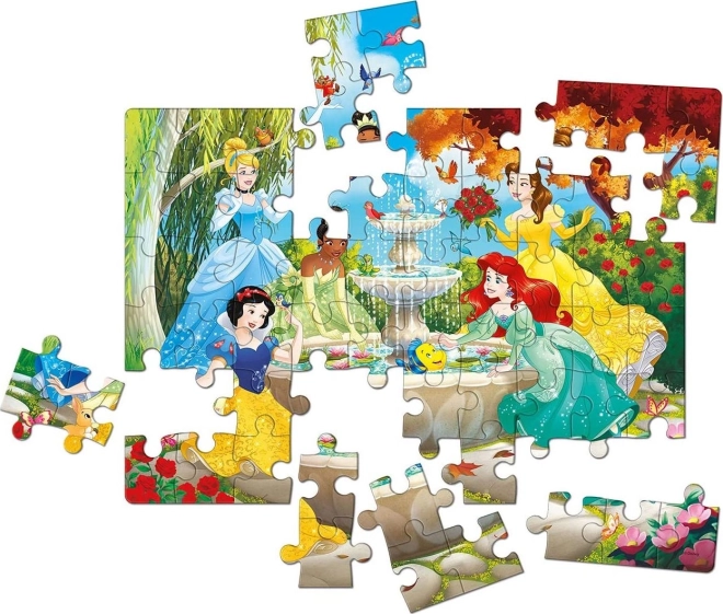 Dziecięce puzzle z motywem księżniczek Disneya zawiera 60 elementów i rozwija zdolności manualne oraz umiejętności obserwacyjne. Wysokiej jakości materiały i ekskluzywny druk gwarantują trwałe i żywe kolory.