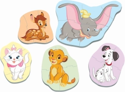 Odkryj zabawne i edukacyjne baby puzzle dla dzieci od 24 miesięcy marki Educa. Zestaw zawiera 5 progresywnych puzzli z 3–5 dużymi i solidnymi elementami, które dzieci łatwo trzymają w rączkach. Wspierają koncentrację, rozwój psychomotoryczny, wyobraźnię i ciekawość, a do tego zachwycają uroczymi motywami DISNEY ze zwierzętami.