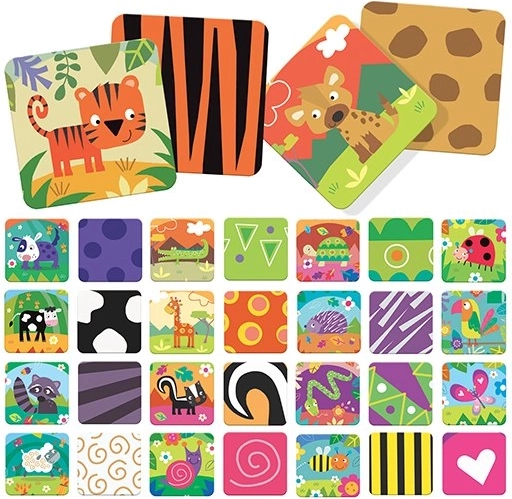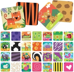 Zestaw zawiera 50 kart (25 par) z logicznym podziałem zwierząt według środowiska: łąka, dżungla, sawanna, las i farma. Dzięki twardym i wytrzymałym kartom oraz wyrazistym kolorom i kształtom gra jest atrakcyjna i długotrwale użyteczna. Oferuje wiele wariantów rozgrywki i doskonale nadaje się dla przedszkolaków w wieku 3–6 lat.