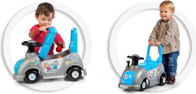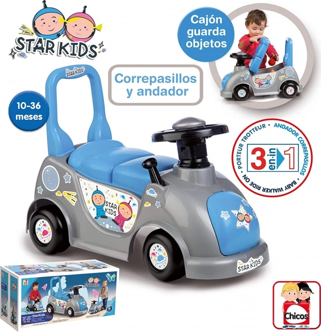 Odkryj uniwersalny jeździk CHICOS Star Kids 3w1 w zabawnym niebiesko-szarym wzornictwie z motywami kosmicznymi. Służy jako chodzik do pierwszych kroków, następnie jako jeździk wspierający koordynację, a także oferuje schowek na drobiazgi pod siedziskiem. Wysokiej jakości, wytrzymałe tworzywo i przemyślana konstrukcja zapewniają wygodne i bezpieczne użytkowanie każdego dnia.