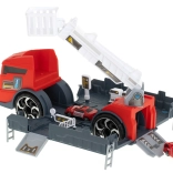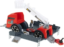 Dostarcz małe autka na miejsce akcji z pomocą tego wozu strażackiego. Zintegrowany transporter umożliwia przewóz dwóch dołączonych modeli autek, które można łatwo załadować za pomocą ramp. Dzieci mogą też poruszać wysuwaną drabiną, co dodaje kolejny poziom interaktywności.