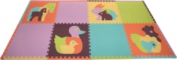 Te piankowe puzzle składają się z ośmiu dużych kwadratowych elementów i dwunastu elementów obrzeża, które razem tworzą powierzchnię o wymiarach ok. 244 x 124 cm. Każdy element ma wymiary 60 x 60 cm, bez obrzeża, licząc od zęba do wycięcia. Bezpieczna, miękka i zmywalna mata tłumi hałas i izoluje od chłodu, dzięki czemu idealnie sprawdza się jako dywan do zabawy w pokojach dziecięcych.
