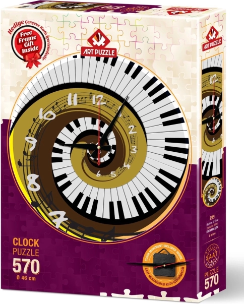 Stwórz w domu stylową dekorację o praktycznym zastosowaniu. Okrągłe puzzle z motywem klawiszy połączysz do średnicy ok. 46 cm, przykleisz do podkładu i umieścisz w ramie. Po wyschnięciu wystarczy włożyć baterię i masz gotowy zegar ścienny, który zachwyci w salonie, gabinecie i pokoju dziecięcym.