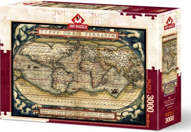 Delektuj się układanką z unikalnym historycznym motywem – pierwszym nowożytnym atlasem z 1570 roku. Dzięki 3000 precyzyjnie wycinanym elementom czeka Cię dokładne układanie, a po ukończeniu otrzymasz wielkoformatowy obraz o wymiarach około 120 × 85 cm, który wyróżni się w każdym wnętrzu.