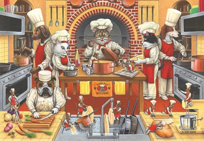 Puzzle Zwierzęca kuchnia z 500 elementami zapewniają godziny zabawy dla całej rodziny. W zestawie znajduje się praktyczna podstawka, która umożliwia umieszczenie wieczka pudełka jako wzoru do układania.