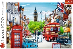 Zrelaksuj się i baw przy układaniu 1000-elementowych puzzli Londyńska ulica, które ukazują piękno i energię brytyjskiej metropolii. Po ułożeniu powstanie obraz o wymiarach 683 x 480 mm.