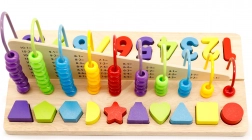Oprócz liczydła zestaw zawiera także kolorowe drewniane kształty i liczby. Wspieraj rozpoznawanie kształtów i orientację w liczbach.