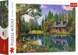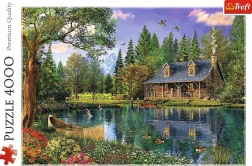 Delektuj się spokojną atmosferą natury z wielkoformatowymi puzzlami przedstawiającymi drewnianą chatę nad spokojnym jeziorem, otoczoną drzewami i dziką przyrodą. Po ułożeniu powstaje szczegółowy obraz o wymiarach 136 × 96 cm – idealny do oprawienia i ozdobienia wnętrza.