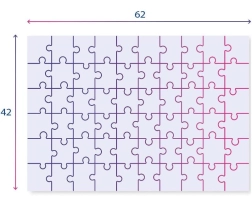 Ułożone puzzle mają wymiary 62 x 42 cm, idealny rozmiar dla małych dziecięcych rączek.
