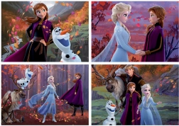 Puzzle Educa Kraina Lodu 2 oferują cztery odrębne obrazy o wymiarach 34 x 24 cm. Te puzzle są idealne dla dzieci, które chcą doskonalić się w układaniu i doceniają różne poziomy trudności.