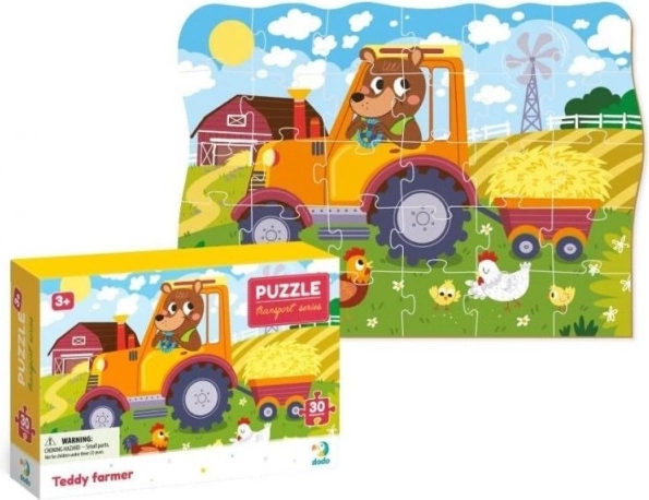 Odkryj uroki serii DODO Transport z motywem farmera. Te puzzle z 30 elementami rozwijają małą motorykę, koncentrację oraz wyobraźnię, gdy dzieci układają barwną scenę z farmy. Dzięki obrysowej ramce małym rączkom łatwiej się orientować, a układanie sprawia radość od pierwszego elementu.