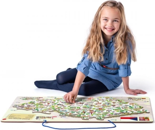 - Magnetyczna mapa, edukacyjne puzzle i gra towarzyska