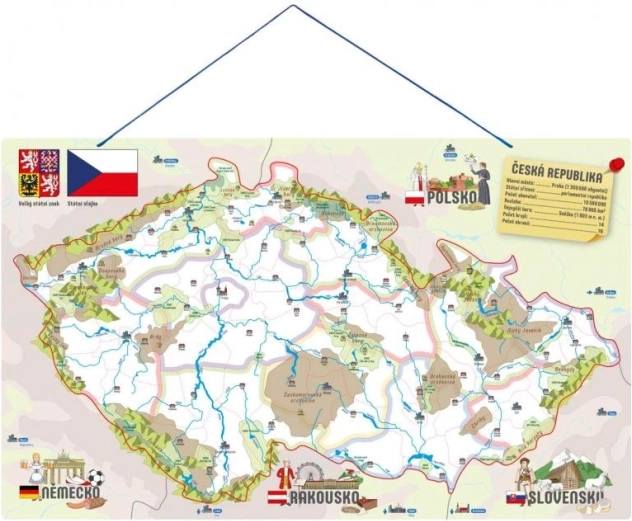 Odkryj zabawną i edukacyjną pomoc dla dzieci – magnetyczną mapę Czech 3 w 1, która łączy edukacyjne puzzle, pomoc szkolną i grę towarzyską. Dzieci w formie zabawy opanują powiaty i ich miasta, poznają rzeki i pasma górskie, a dzięki ilustracjom łatwo zrozumieją, co jest typowe dla poszczególnych obszarów. W zestawie znajduje się także wciągająca gra trenująca spostrzegawczość i percepcję.