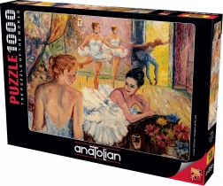 Ciesz się układaniem puzzli Baletowe studio o liczbie 1000 elementów, które zawiera praktyczny stojak dla wygodnego układania.