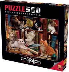 Puzzle Kotki w bibliotece dla miłośników kotów i układania puzzli z aromatem biblioteki. Idealny relaks dla całej rodziny.