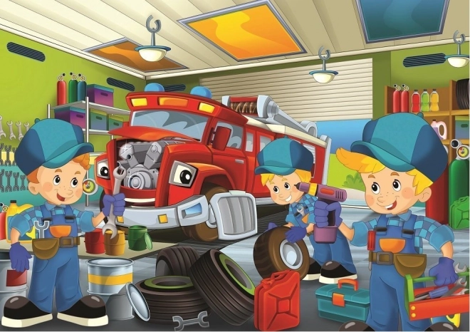 Ciesz się zabawą dla całej rodziny z dwuczęściowym zestawem puzzli Mali mechanicy. Opakowanie zawiera dwie układanki po 100 elementów, idealne dla dzieci i początkujących. Każde gotowe puzzle ma wymiary ok. 34 × 24 cm i oferuje kolorowe, radosne ilustracje z motywem małych mechaników. Dzięki wysokiej jakości wykonania elementów układanie jest precyzyjne, przyjemne i rozwija cierpliwość oraz motorykę małą.