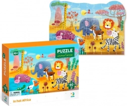 Dziecięce puzzle DODO z serii Świat zwierząt przedstawiają scenę z afrykańskiej sawanny z 60 elementami. Oferują piękne ilustracje, wysoką jakość wykonania oraz możliwość połączenia z innymi scenami z tej samej serii. Idealne dla dzieci od 4 lat.