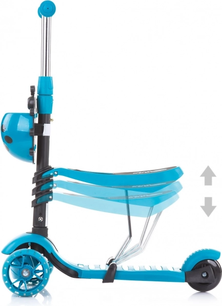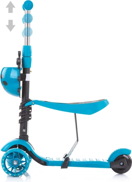 Dziecięca hulajnoga 3w1 CHIPOLINO KIDDY EVO oferuje aż trzy sposoby użytkowania, rosnąc wraz z Twoim dzieckiem – z prowadnikiem dla rodzica, jako jeździk z siedziskiem oraz klasyczna hulajnoga. Dzięki trzem kółkom jest bardzo stabilna, ma regulowaną kierownicę i siedzisko, antypoślizgowe rączki i podest, LED-y w przednich kołach oraz tylny hamulec nożny. Do tego przedni koszyczek na drobiazgi.