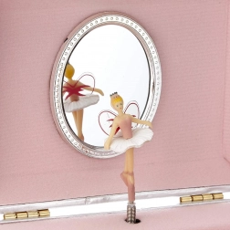 Po otwarciu wieka baletnica zaczyna tańczyć przed owalnym lusterkiem, a rozbrzmiewa delikatna melodia Jeziora łabędziego – czarujący rytuał przy każdym odkładaniu biżuterii.