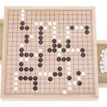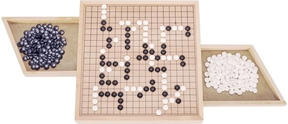 Zestaw marki GOKI zawiera drewnianą planszę oraz 361 pionków, umieszczonych w pudełku z twardą papierową pokrywą. Producent kładzie nacisk na bezpieczeństwo, nieszkodliwość dla zdrowia i zrównoważone źródła. Odcień koloru może się nieznacznie różnić w zależności od użytego materiału.