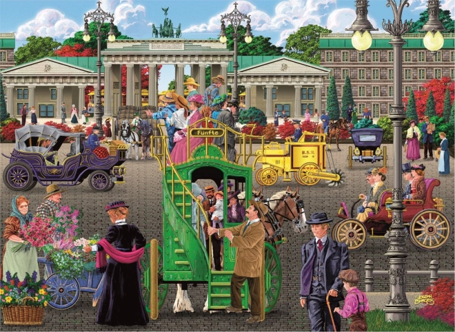 Te drewniane puzzle oferują atrakcyjny motyw tętniącej życiem historycznej ulicy i zapewniają podwójną porcję zabawy dzięki dwustronnemu wykonaniu – z awersu układasz według obrazka, z rewersu według powtarzającego się wzoru i kształtów. Laserowo podkreślone detale oraz specjalnie uformowane elementy w kształtach zwierząt, budowli i przedmiotów nadają układaniu nowy wymiar.