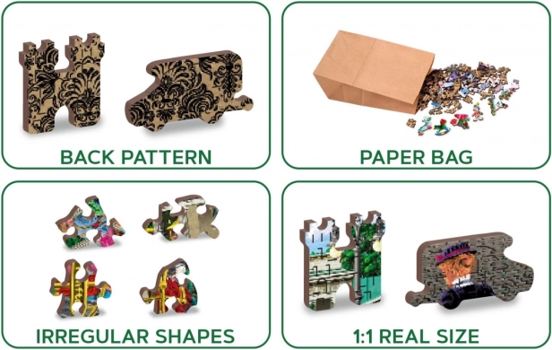 Odkryj zabawę i wyzwanie z tymi drewnianymi, dwustronnymi puzzlami z motywem historycznej ulicy. Dzięki elementom wycinanym laserowo, unikalnym kształtom „whimsy” oraz dwustronnemu wykonaniu 2w1 czeka Cię układanka, która jest ekologiczna, precyzyjnie wykonana i doskonale rozwija koncentrację oraz logikę.