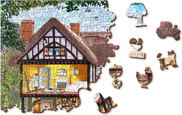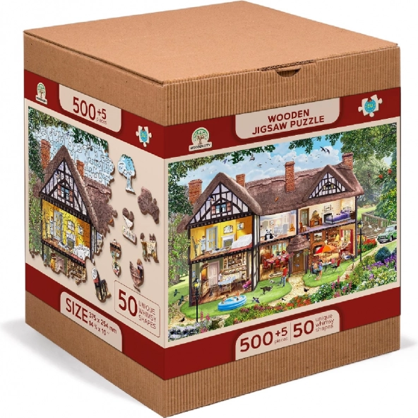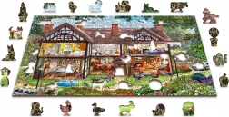 Odkryj zabawę i wyzwanie w jednym dzięki drewnianym dwustronnym puzzlom 2 w 1 z motywem letniego domu. Precyzyjnie wycinane laserowo elementy o specjalnych kształtach zwierząt, przedmiotów i budowli zapewniają wyższy poziom trudności i wyjątkową radość z układania. Puzzle są eko friendly, bez plastikowych opakowań, a dzięki gładkim krawędziom świetnie leżą w dłoni.